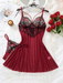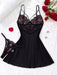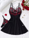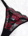Women Black & Red Rose Gothic Lace Crop Top Dress & Thong Lingerie Set
