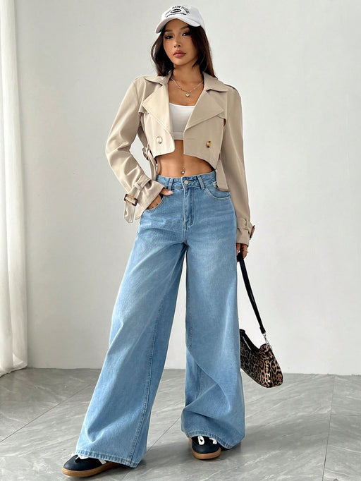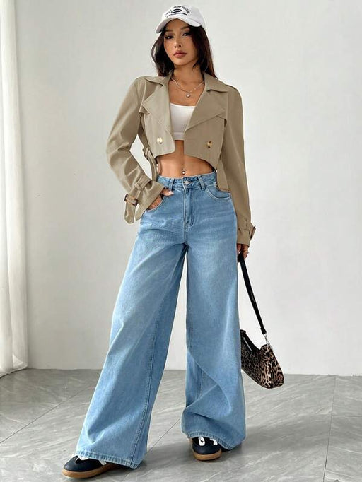 Women’s Cropped Trench Coat Lapel Collar Long Sleeve Casual Jacket UK