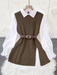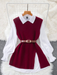 The lightweight blouse offers a relaxed yet feminine silhouette, while the knit vest adds warmth and texture, making this women’s two-piece set ideal for spring, autumn, and winter wear. Whether styled for casual outings, office wear, or weekend looks, this outfit delivers versatile elegance with a minimalist finish.