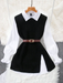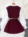 Women’s 2-Piece Layered Outfit Lantern Sleeve Blouse & Knit Vest Set